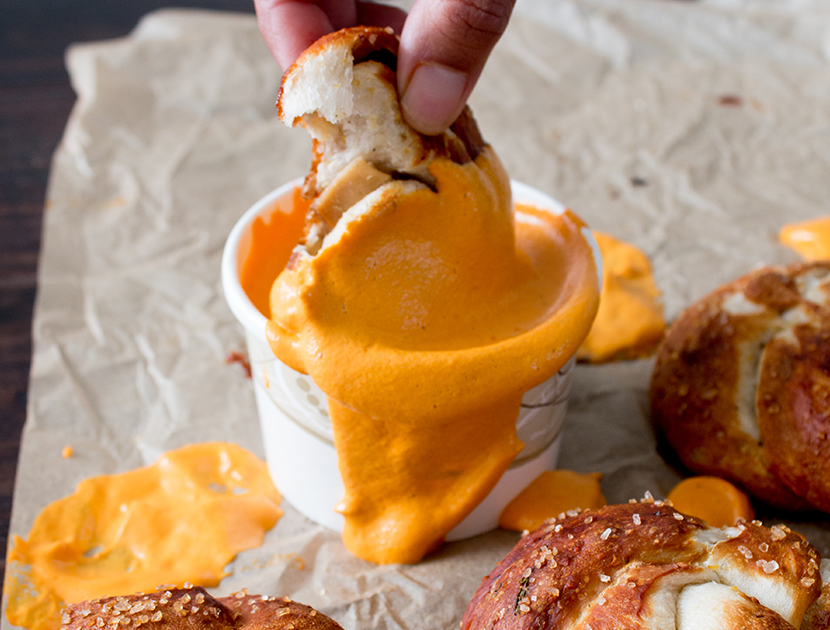 Step aside soft pretzels with mustard! These pretzel knots with vegan nacho cheese are #snacktimeGOALS.